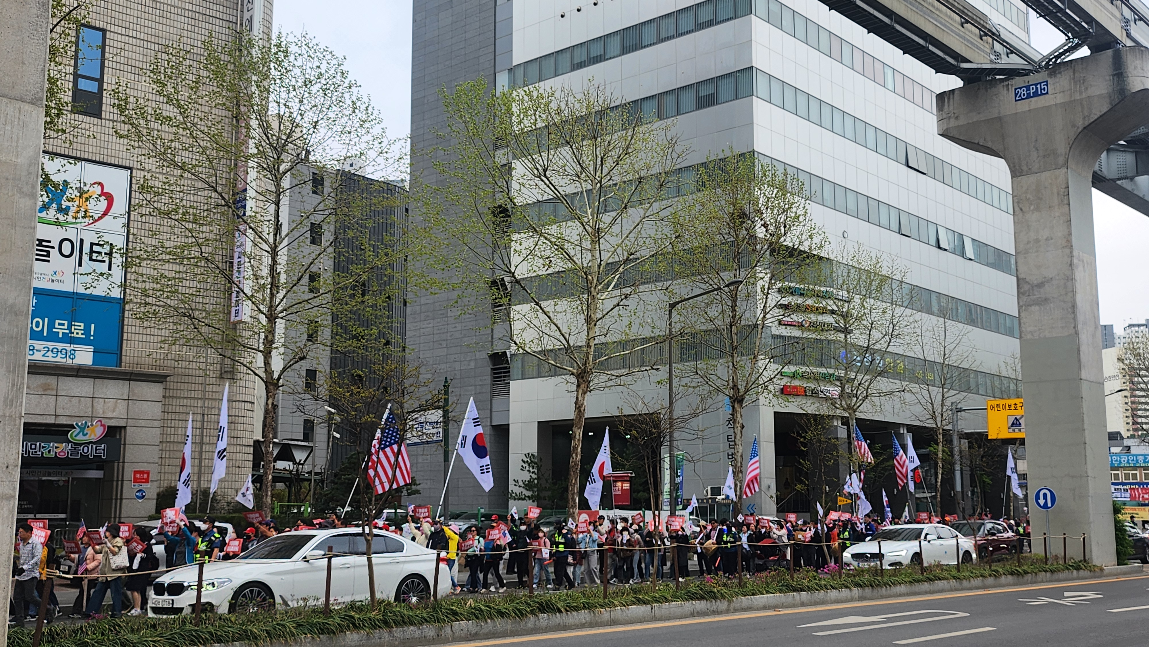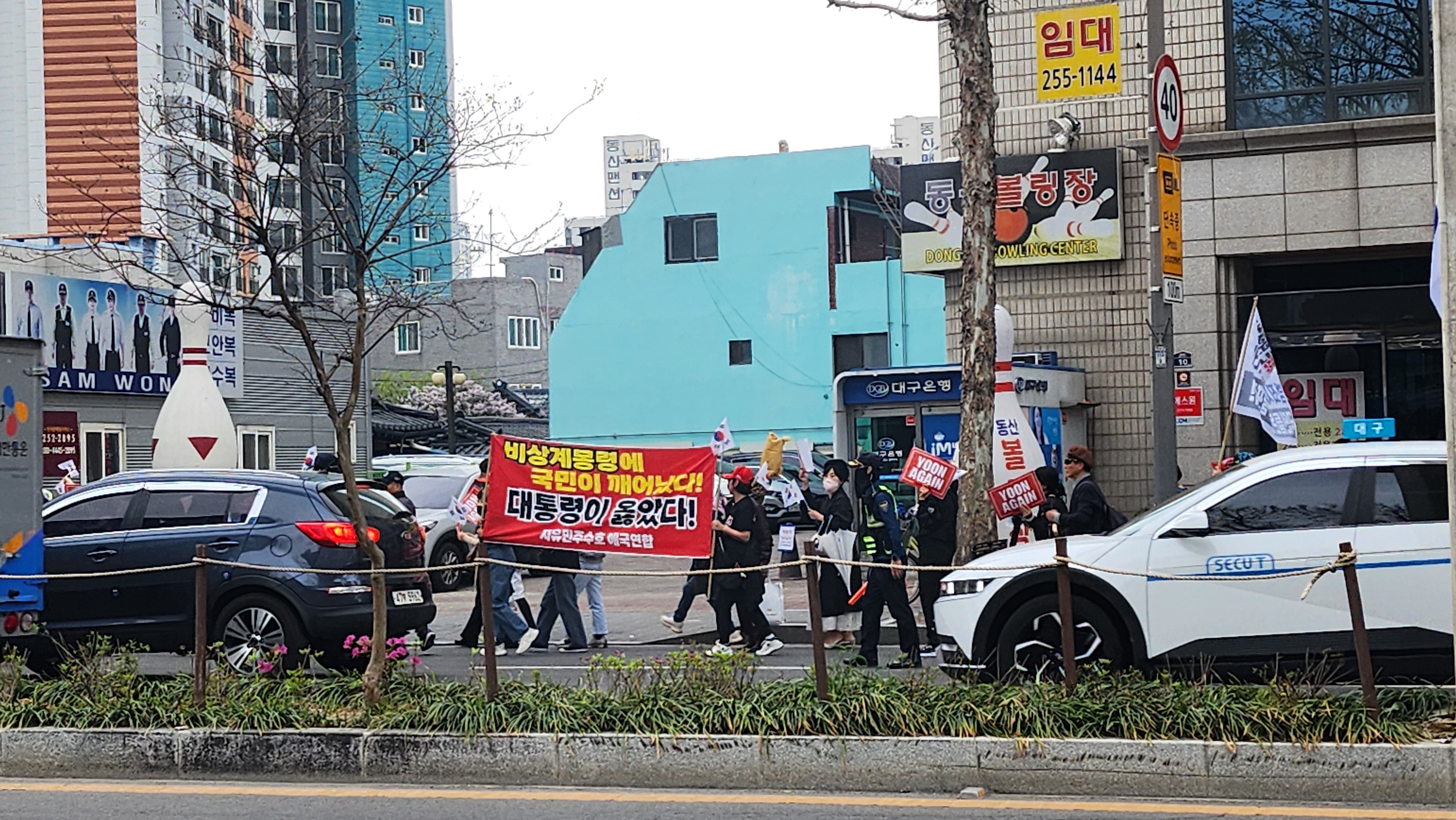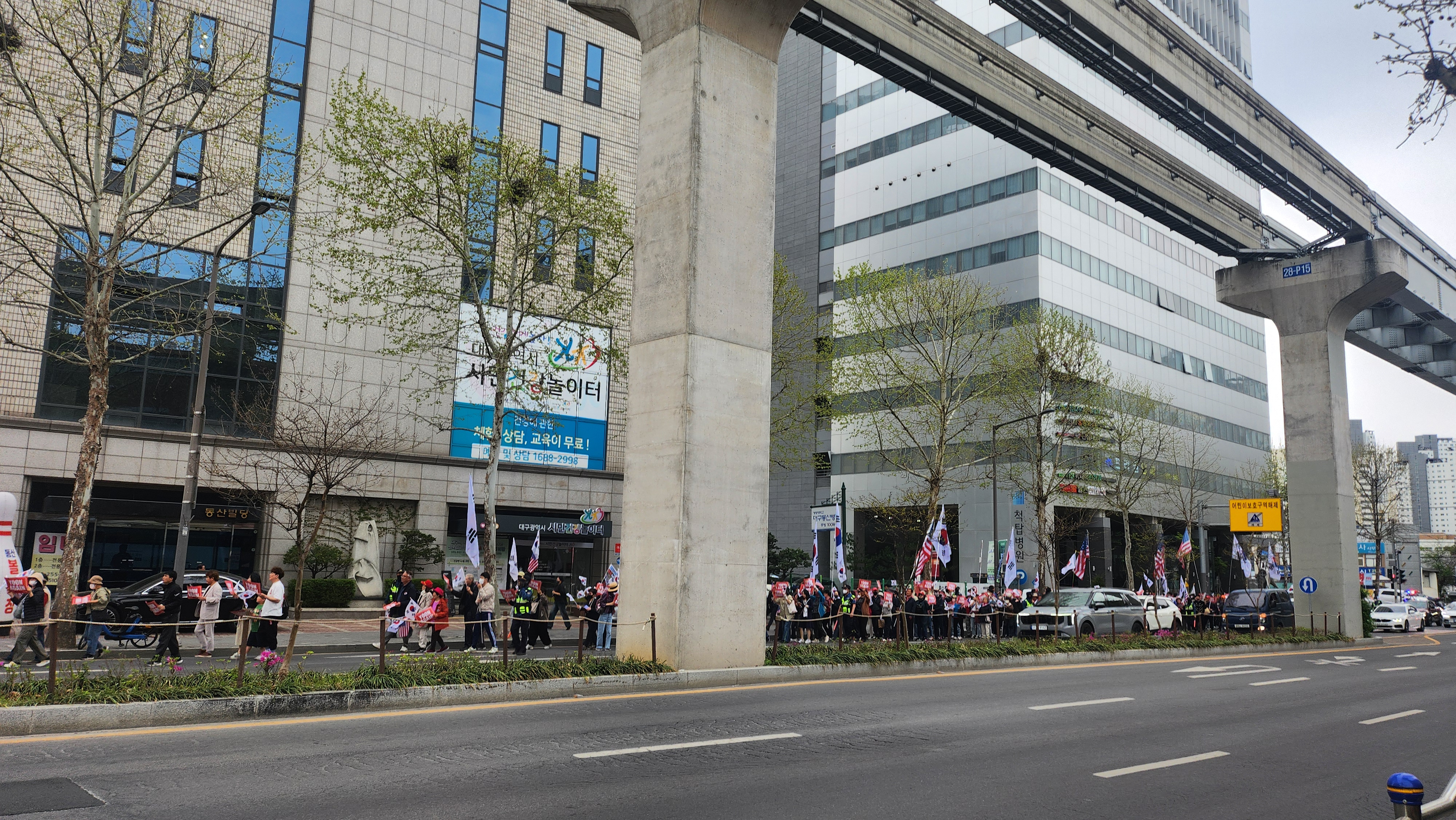 보수의 심장이라지만 요즘 시위가 잦아 그런지 지나가다 본 현장에서 시민들은 특별한 반응은 없었다.