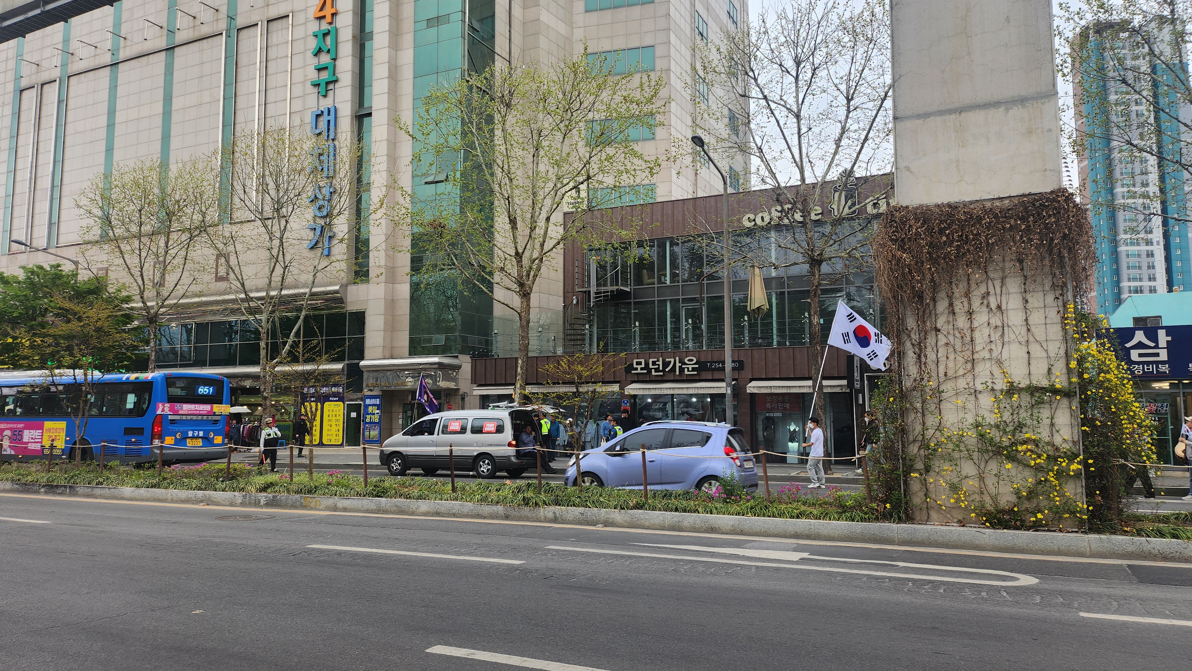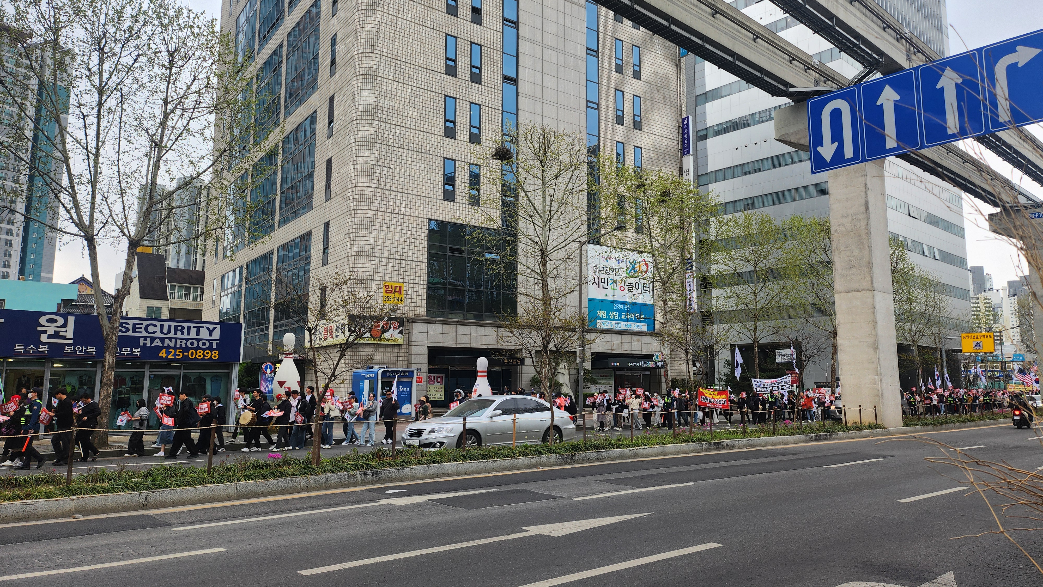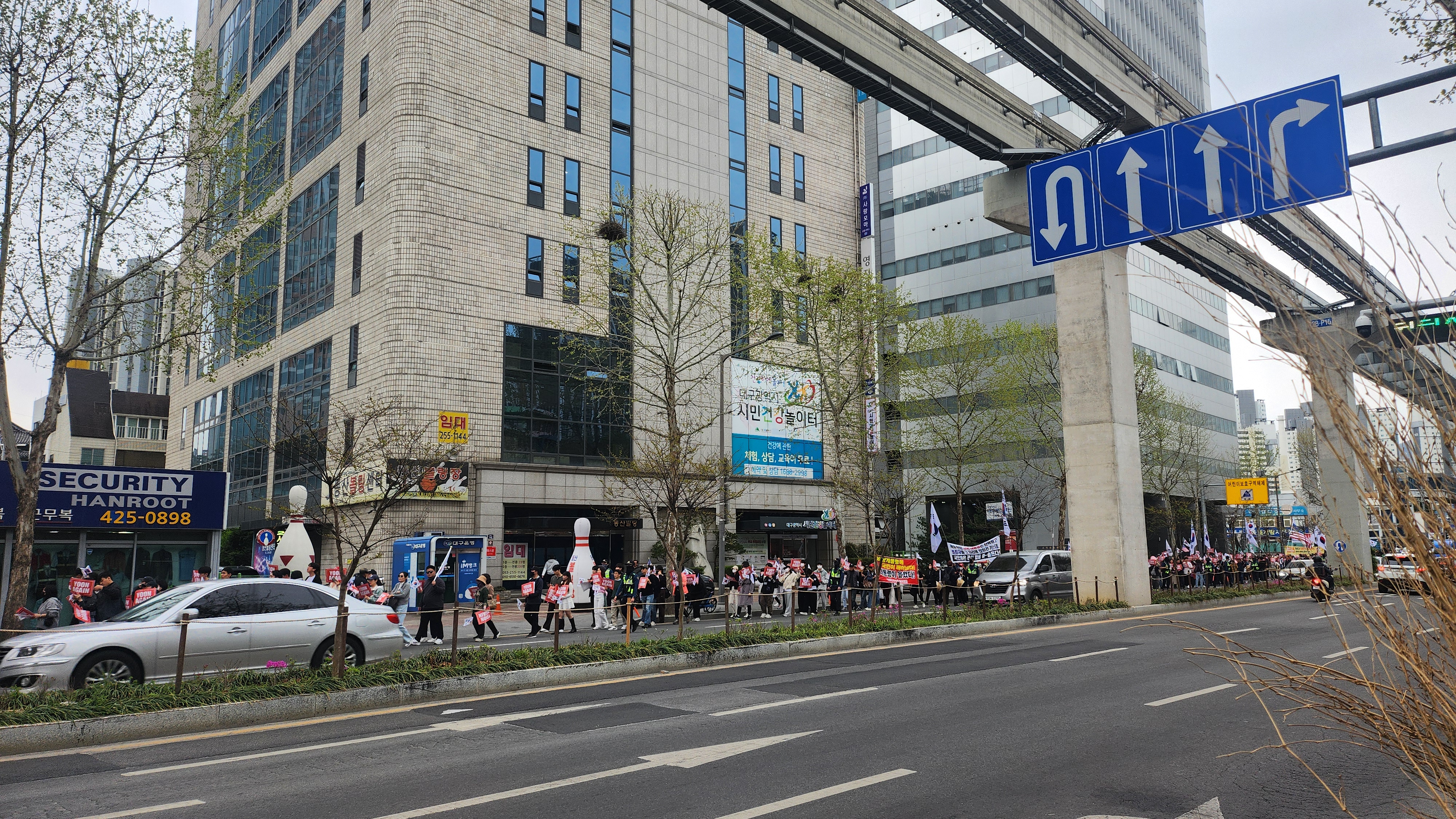 보수의 심장이라지만 요즘 시위가 잦아 그런지 지나가다 본 현장에서 시민들은 특별한 반응은 없었다.