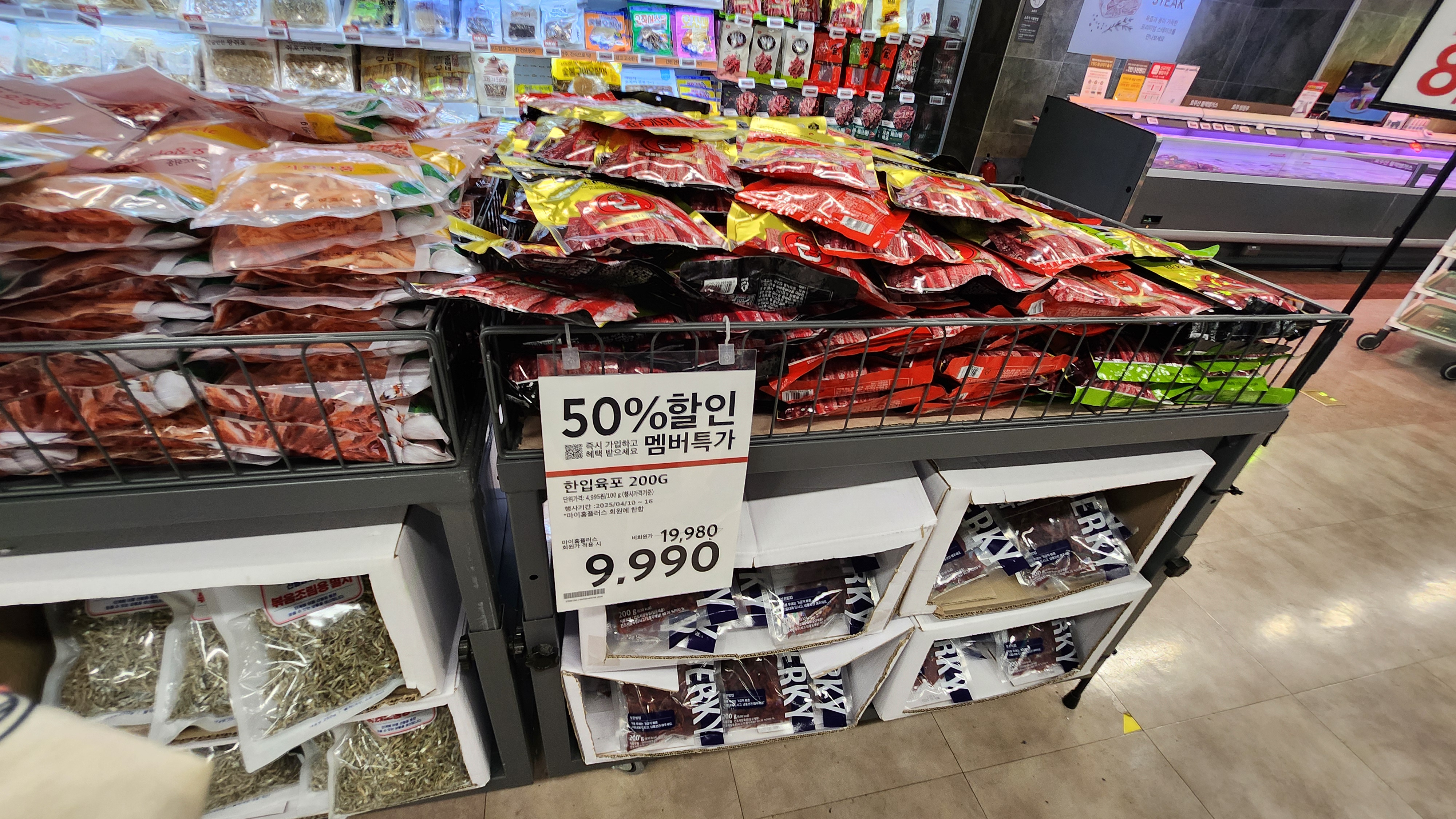정육코너도 양념했기 때문에 떨이 할인율이 높습니다.