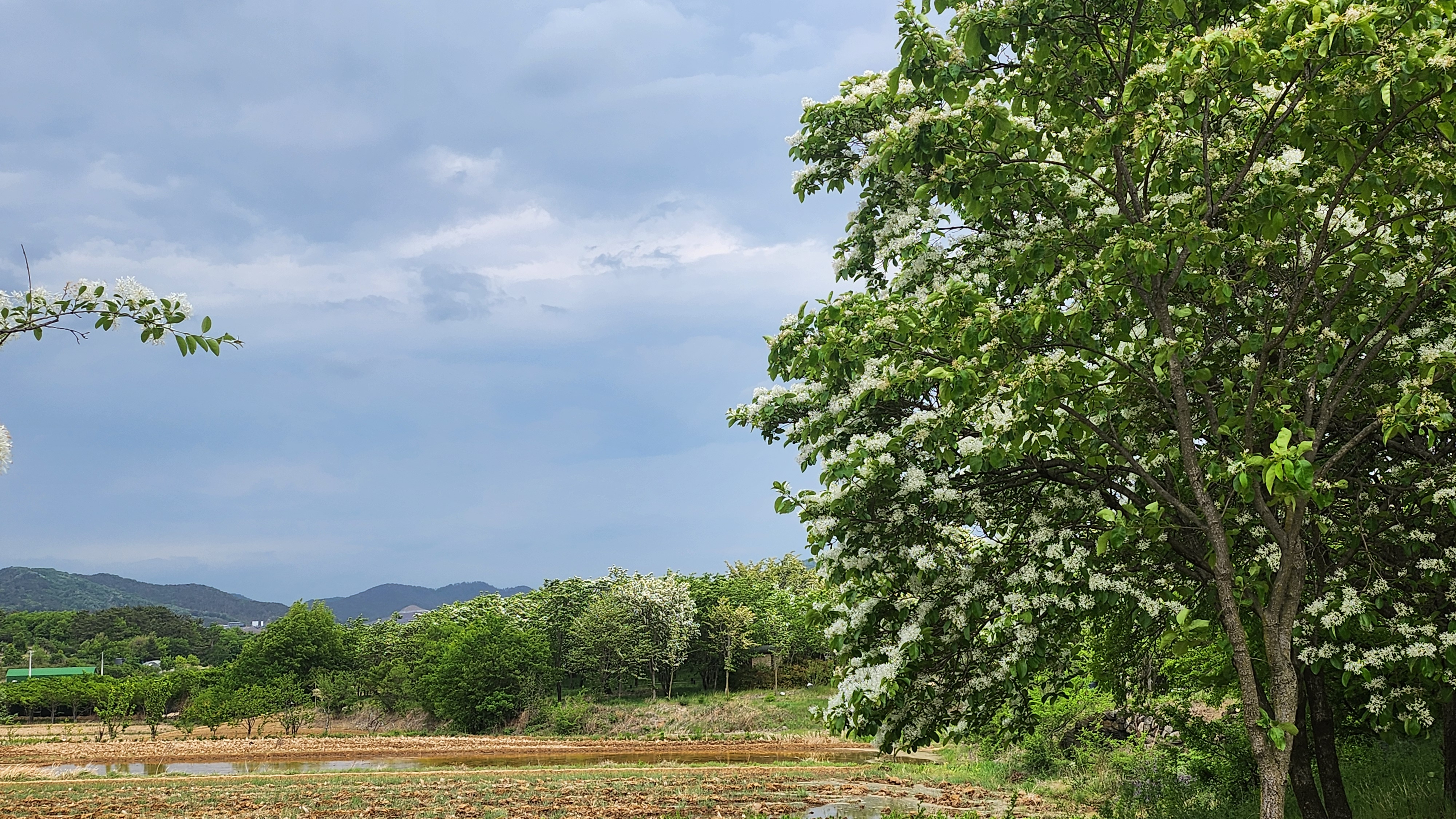 초여름, 하늘 아래 순백의 풍경을 만들어주는 나무예요.